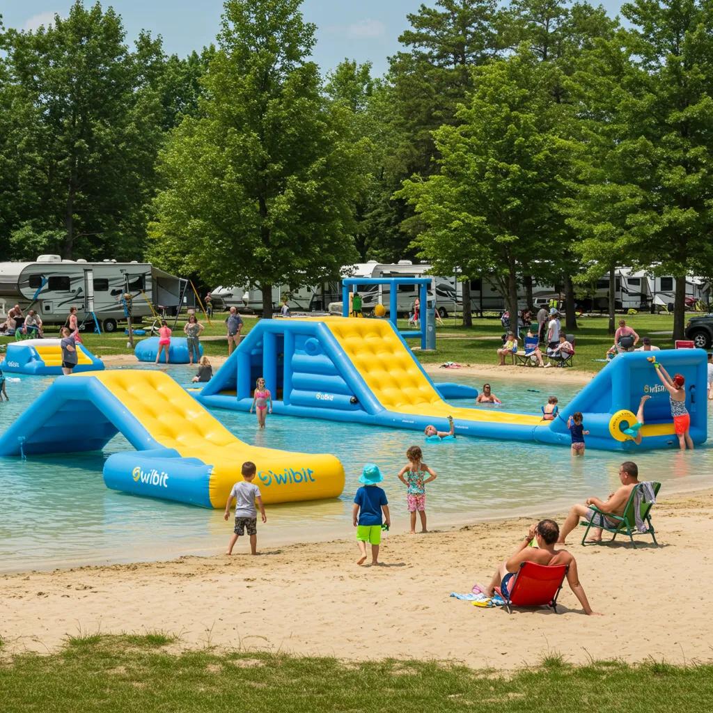 Water activities truly amplify the family camping experience, offering a wonderful mix of supervised fun, gentle swimming, and exciting river explorations that strengthen family bonds and create lasting memories. Inflatable attractions like our Wibit water park provide dynamic play for older kids and teens, while the swimming lake and beach offer safe, shallow zones for younger children. For a different kind of adventure, our river float trips introduce scenic paddling experiences, made easy with on-site rental providers. These water options cater to families of all skill levels and preferences, and the following sections will dive deeper into the Wibit, our lake design, and canoe/kayak logistics.