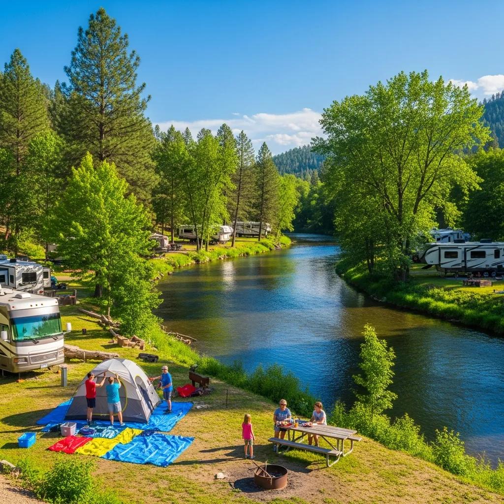 Bring a tent or RV, sleeping gear, cooking supplies, and outdoor furniture. Pack insect repellent, sunscreen, and a basic first-aid kit. For float trips, bring swimwear, water shoes, and a waterproof bag for valuables.