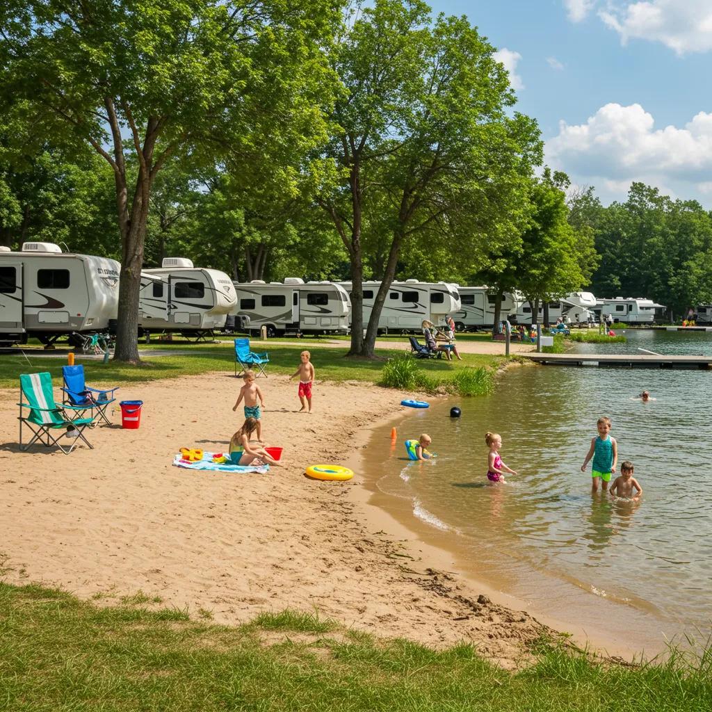 Ridge Ranch Campground by GatherGrounds, nestled in Newton Falls, Ohio, masterfully combines many of these high-value amenities—including full hookup RV sites, modern bathhouses, on-site laundry, Wi-Fi availability, paddleboat and canoe rentals, a sandy beach on a 17-acre lake, pavilion rentals, playgrounds, and proximity to local attractions. This thoughtful integration perfectly illustrates how a well-equipped lakeside destination can meet diverse camper expectations. For travelers prioritizing lake access, family programming, and practical comforts conveniently located near Interstate-80, Ridge Ranch Campground offers a practical example and a straightforward reservation path for planning your next memorable outdoor adventure.